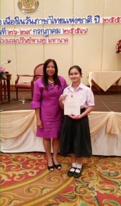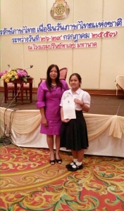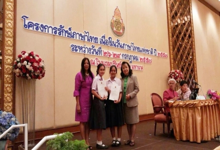 นางสาวปภาวรินทร์ พุกแก้วและนางสาววารินยา เกษร นักเรียนโรงเรียนเฉลิมขวัญสตรี เป็นตัวแทนสำนักงานเขตพื้นที่การศึกษามัธยมศึกษา เขต 39 เข้าร่วมการแข่งขันการเขียนรายงานเชิงวิชาการชั้น ม.4-6 ระดับประเทศ ในงานโครงการรักษ์ภาษาไทยเนื่องในวันภาษาไทยแห่งชาติ ประจำปี 2557 ระหว่างวันที่ 27-29 กรกฎาคม 2557 ณ โรงแรมปริ้นซ์พาเลซ มหานาค กรุงเทพฯ ได้รับรางวัลชมเชย รับทุนการศึกษาพร้อมเกียรติบัตร โดยมีครูพรพิมล สาริการินทร์ เป็นผู้ฝึกซ้อมและนำนักเรียนเข้าร่วมกิจกรรมในนามของคณะกรรมการบริหารโรงเรียน คณะครูและนักเรียนโรงเรียนเฉลิมขวัญสตรี ขอแสดงความชื่นชมยินดี มา ณ โอกาสนี้ ขอขอบคุณคณะครูกลุ่มสาระการเรียนรู้ภาษาไทยทุกท่านที่ได้ฝึกซ้อมและเป็นกำลังใจให้นักเรียนมาโดยตลอด (ภาพ:พรพิมล/ข่าว:ประชาสัมพันธ์)