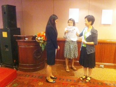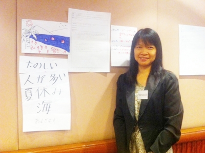 วันที่ 26-27 กรกฎาคม 2557 ครูพีรดา บัวกลิ่น หัวหน้าโครงการพัฒนาทักษะภาษาญี่ปุ่น กลุ่มสาระการเรียนรู้ภาษาต่างประเทศโรงเรียนเฉลิมขวัญสตรี พร้อมด้วยครูจันทิมา ประสงค์มณี และครูคุนิโกะ (ครูชาวญี่ปุ่น) เข้ารับการอบรมภาษาญี่ปุ่นในโครงการ Sakura Network และการนำทฤษฎี ASRCSมาใช้จริงในการฝึกขั้นพื้นฐานให้มีประสิทธิภาพในการเรียนการสอนภาษาญี่ปุ่น จัดขึ้นโดย Japan Foundation ณ โรงแรมท็อปแลนด์ อำเภอเมือง จังหวัดพิษณุโลก (ภาพ:พีรดา/ข่าว:ประชาสัมพันธ์)