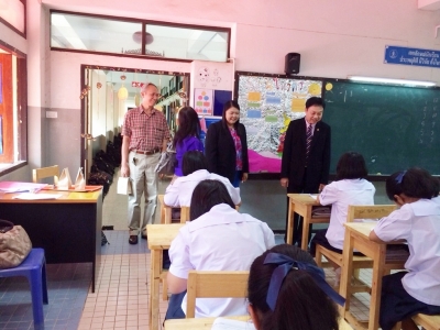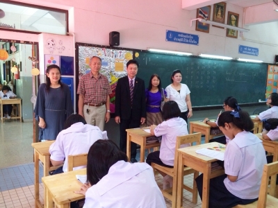 วันเสาร์ที่่ 2 สิงหาคม 2557 นายมณเฑียร ม่วงศรีศักดิ์ รองผู้อำนวยการสำนักงานเขตพื้นที่การศึกษามัธยมศึกษา เขต 39 มาตรวจเยี่ยมสนามสอบโรงเรียนเฉลิมขวัญสตรี ในการสอบวัดความรู้ ความสามารถด้านภาษาไทย คณิตศาสตร์และวิทยาศาสตร์ โรงเรียนมาตรฐานสากลของนักเรียนระดับชั้นมัธยมศึกษาปีที่่ 1 และมัธยมศึกษาปีที่่ 4 ในโรงเรียนมาตรฐานสากล รุ่นที่่ 1 และรุ่นที่่ 2 โดยมีนายศาศวัต ประทุมรัตน์,นางกนกดาว เดชก้อง,ดร.จิราภรณ์ เอมเอี่ยม รองผู้อำนวยการโรงเรียนพร้อมด้วยคณะครูให้การต้อนรับ (ภาพ:จิราภรณ์/ข่าว:ประชาสัมพันธ์)