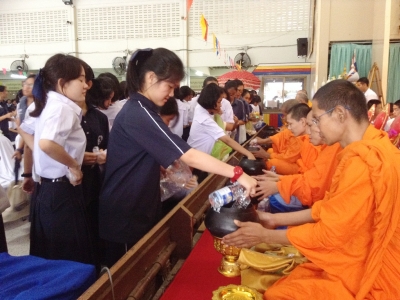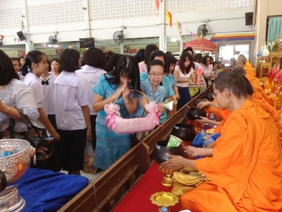 วันที่่ 5 กุมภาพันธ์ 2557 กลุ่มงานกิจกรรมนักเรียนและชุมชนร่วมกับคณะกรรมการสภานักเรียน จัดพิธีตักบาตรข้าวสารอาหารแห้งเพื่อถวายเป็นพระราชกุศล เนื่องในวโรกาสมหามงคลเฉลิมพระชนมพรรษาสมเด็จพระนางเจ้าสิริกิติ์ฯ พระบรมราชินีนาถ โดยมี ดร.จิตราภรณ์ ใยศิลป์ ผู้อำนวยการโรงเรียนเฉลิมขวัญสตรี เป็นประธานในพิธี พร้อมด้วยรองผู้อำนวยการ คณะกรรมการบริหารโรงเรียน คณะครูและนักเรียนร่วมพิธีโดยพร้อมเพรียงกัน ณ บริเวณโรงอาหาร (ภาพ:ข่าว/ประชาสัมพันธ์)