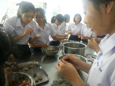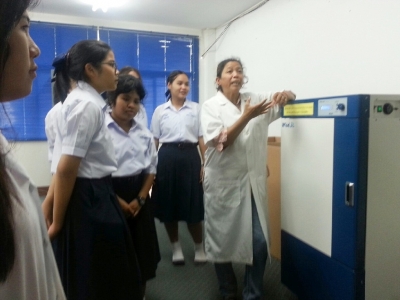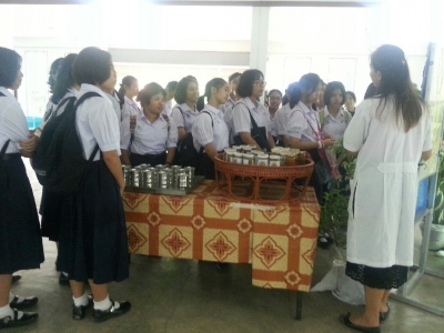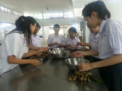 วันที่่ 5 สิงหาคม 2557 ครูเพ็ญจันทร์ โชติรัตนศักดิ์ ครู ชำนาญการพิเศษกลุ่มสาระการเรียนรู้วิทยาศาสตร์ โรงเรียนเฉลิมขวัญสตรี นำนักเรียนโครงการห้องเรียนพิเศษวิทยาศาสตร์ ชั้นมัธยมศึกษาปีที่ 4.3,4.4 ศึกษาแหล่งเรียนรู้และฝึกปฏิบัติการทางชีววิทยาเรื่อง เทคนิคการแปรรูปอาหาร ผักและผลไม้ ณ ภาควิชาวิทยาศาสตร์การอาหาร คณะวิทยาศาสตร์ มหาวิทยาลัยราชภัฎพิบูลสงครามพิษณุโลก (ภาพ:เพ็ญจันทร์/ข่าว:ประชาสัมพันธ์)