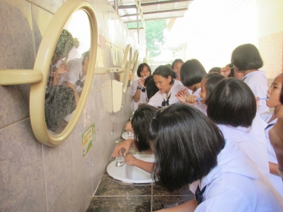 วันที่่ 29 กรกฎาคม 2557 ครูศศิญาพัชร์ ศิริรัตนรา หัวหน้างานอนามัยโรงเรียนและคณะครูที่ปรึกษานักเรียนชั้นมัธยมศึกษาปีที่ 1 จัดกิจกรรมส่งเสริมสุขภาพอนามัยในช่องปากให้แก่นักเรียนชั้นมัธยมศึกษาปีที่่ 1 ด้วยการจัดกิจกรรมแปรงฟันอย่างถูกสุขลักษณะเพื่ออนามัยในช่องปาก ในคาบปกครอง ณ หอประชุมราชานุเคราะห์ 3 โรงเรียนเฉลิมขวัญสตรี (ภาพ:ลลิตา/ข่าว:ประชาสัมพันธ์)