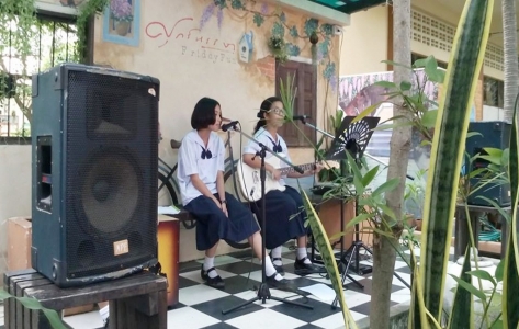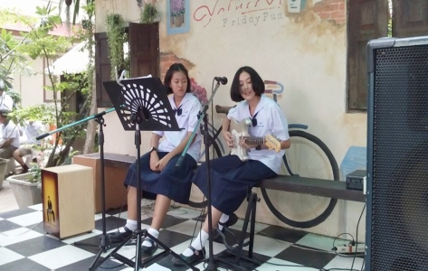 วันศุกร์ที่่ 8 สิงหาคม 2557 คณะครูกลุ่มสาระการเรียนรู้ศิลปศึกษา โรงเรียนเฉลิมขวัญสตรี จัดกิจกรรม"ศุกร์หรรษา" ด้วยการแสดงความสามารถของนักเรียนด้านดนตรีโฟล์คซอง ขับร้องเพลง ช่วงพักรับประทานอาหารกลางวันเวลา 11.20-12.10 น. ณ บริเวณด้านหน้าอาคารศิลปะ สำหรับกิจกรรมวันนี้มีนักเรียนระดับชั้นมัธยมศึกษาตอนต้น ร่วมแสดงความสามารถ สร้างบรรยากาศของการพักรับประทานอาหารและการพักผ่อนของนักเรียนได้เป็นอย่างดียิ่ง ขอบคุณคณะครูกลุ่มสาระการเรียนรู้ศิลปศึกษาทุกท่าน ขอบใจนักเรียนทุกคนที่ได้มาร่วมบรรเลงเพลงในวันนี้ (ภาพ:ศิริรัตน์/ข่าว:ประชาสัมพันธ์)