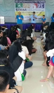 วันที่่ 15-17 สิงหาคม 2557 ครูกอบแก้ว ยลพันธุ์ หัวหน้าโครงการ Intensive English Program(IEP) กลุ่มสาระการเรียนรู้ภาษาต่างประเทศโรงเรียนเฉลิมขวัญสตรี พร้อมด้วยคณะครูร่วมกันจัดกิจกรรม กิจกรรม ENG-SCI-MATH CAMP PLUS ECO FIELD TRIP สำหรับนักเรียนในโครงการระดับชั้นมัธยมศึกษาปีที่่ 4-5 เพื่อให้นักเรียนสามารถเรียนรู้ร่วมกันเป็นกลุ่ม แลกเปลี่ยนความคิดเห็นระหว่างกัน,สามารถใช้ภาษาอังกฤษในการสรุปความคิดและสื่อสารโดยการพูดหรือเขียนสื่อความ,มีความคิดริเริ่มสร้างสรรค์และมีเจตคติที่ดีต่อการเข้าร่วมกิจกรรม EnglishScienceMath Camp ณ รัตนะปุระ บีชรีสอร์ท จันทบุรี กิจกรรมครั้งนี้ดำเนินไปด้วยความเรียบร้อย ขอขอบคุณคณะวิทยากรทุกท่านสำหรับกิจกรรมที่สร้างสรรค์,คณะครูที่ช่วยดูแลนักเรียนและขอบใจนักเรียนทุกคนที่ตั้งใจเข้าร่วมกิจกรรม(ภาพ:กอบแก้ว/ข่าว:ประชาสัมพันธ์)