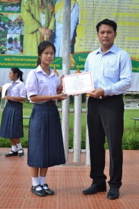 วันที่ 15 สิงหาคม 2557 นายธีรพัฒน์ ดีเทอดเกียรติ ผู้อำนวยการโรงเรียน และ นายยงค์ยุทธ รุ่งแจ้ง รองผู้อำนวยการโรงเรียน ได้มอบเกียรติบัตรให้กับกลุ่มสาระการเรียนรู้ภาษาต่างประเทศ (ภาษาจีน) โดย ครูอิงครัตน์ กังวาลย์ ครูผู้สอนภาษาจีน ได้นำนักเรียนเข้าร่วมการแข่งขันทักษะภาษาจีน ณ โรงเรียนเฉลิมขวัญสตรี ซึ่งผลการแข่งขัน ได้รับรางวัลดังรายการต่อไปนี้ 1. นางสาวนภัสกร เจริญศิลป์ ได้รับรางวัลรองชนะเลิศอันดับ 2 กิจกรรมการแข่งขันขับร้องเพลงจีน ระดับชั้น ม. 4 - 6 2. นางสาววันนิสา แบ่งเพชร ได้รับรางวัลชมเชย กิจกรรมการแข่งขันคัดตัวอักษรจีน ระดับชั้น ม. 4 - 6 3. เด็กหญิงสุพรรษา สีดากุล ได้รับรางวัลรองชนะเลิศอันดับ 2 กิจกรรมการแข่งขันคัดตัวอักษรจีน ระดับชั้น ม. 1 - 3