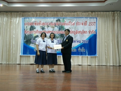 วันที่ 24 สิงหาคม 2557 คณะครูกลุ่มสาระการเรียนรู้วิทยาศาสตร์ โรงเรียนเฉลิมขวัญสตรี นำนักเรียนเข้าร่วมกิจกรรมการแข่งขันทักษะความสามารถของนักเรียน เนื่องในงานสัปดาห์วิทยาศาสตร์ ประจำปี 2557 ณ สหกรณ์ออมทรัพย์ครูพิษณุโลก ได้รับรางวัลชนะเลิศ ระดับมัธยมศึกษาตอนปลาย ได้แก่ นางสาวสรัลชนา ปัตตะพงษ์ นักเรียนชั้นมัธยมศึกษาปีที่ 6.3 และนางสาวกรองแก้ว สกุลปิยะเทวัญ นักเรียนชั้นมัธยมศึกษาปีที่ 6.4 รับเกียรติบัตรพร้อมทุนการศึกษา 2,500 บาท ส่วนทีมระดับมัธยมศึกษาตอนต้น ได้รับรางวัลรองชนะเลิศอันดับ 1 รับเกียรติบัตรพร้อมทุนการศึกษา 2,000 บาท ได้แก่เด็กหญิงสิริวรากร ห่านสกุลและเด็กหญิงชนากาญจน์ กล่อมกล่ำนุ่ม นักเรียนชั้นมัธยมศึกษาปีที่ 3.6 โดยมีครูเนาวรัตน์ ประสงค์,ครูขวัญฤดี ชุ่มชมพูและครูวีรยุทธ แก้วแสงจันทร์ เป็นครูผู้ฝึกซ้อมและนำนักเรียนเข้าแข่งขัน ในนามของคณะกรรมการบริหารโรงเรียน คณะครูและนักเรียนโรงเรียนเฉลิมขวัญสตรีทุกคน ขอแสดงความชื่นชมยินดีมา ณ โอกาสนี้ ขอขอบคุณคณะครูทุกท่านที่ให้การสนับสนุนและเป็นกำลังใจให้นักเรียนมาโดยตลอด (ภาพ:เนาวรัตน์/ข่าว:ประชาสัมพันธ์)