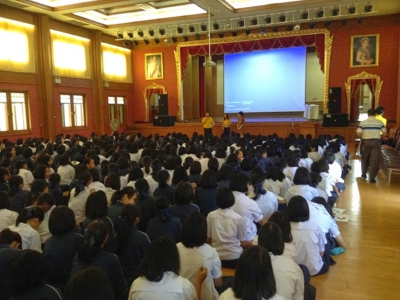 วันจันทร์ที่่ 25 สิงหาคม 2557 ครูสุภาพรรณ์ วิริยะรัตนกุล หัวหน้าระดับชั้นมัธยมศึกษาปีที่่ 2 ร่วมกับครูอินทิรา ดาทอง หัวหน้าศูนย์อาเซียนศึกษาโรงเรียนเฉลิมขวัญสตรี ได้จัดกิจกรรมเตรียมความพร้อมก้าวสู่ประชาคมอาเซียน ให้แก่นักเรียนระดับชั้นมัธยมศึกษาปีที่่ 2 โดยคณะวิทยากรจากมหาวิทยาลัยนเรศวร กิจกรรมประกอบด้วยการบรรยายให้ความรู้ ประกอบสื่อมัลติมีเดีย การตอบปัญหาชิงรางวัล เพลง เกม ระหว่างเวลา 08.30-12.00 น. ณ หอประชุมราชานุเคราะห์ 3 โรงเรียนเฉลิมขวัญสตรี กิจกรรมในวันนี้นักเรียนเข้าร่วมกิจกรรมด้วยความตั้งใจและมีส่วนร่วมในกิจกรรมอย่างสนุกสนานพร้อมความรู้ ในนามของคณะครูและนักเรียนโรงเรียนเฉลิมขวัญสตรี ขอขอบคุณคณะวิทยากรทุกท่านมา ณ โอกาสนี้ (ภาพ:ข่าว/ประชาสัมพันธ์)