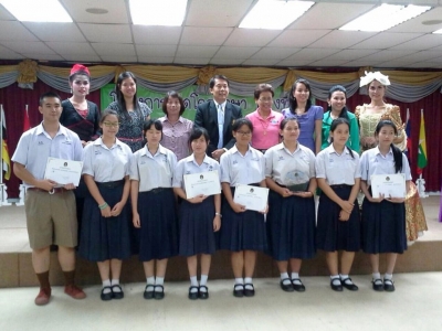 วันที่ 28 สิงหาคม 2557 ครูสุภาวดี สุขกมลธรรม ครูโครงการพัฒนาทักษะภาษาฝรั่งเศส กลุ่มสาระการเรียนรู้ภาษาต่างประเทศ โรงเรียนเฉลิมขวัญสตรี นำนักเรียนเข้าร่วมแข่งขันทักษะภาษาฝรั่งเศส ในงานเปิดโลกภาษา ครั้งที่ 6 ได้รับรางวัลชนะเลิศการแข่งขันตอบปัญหาภาษาฝรั่งเศส หัวข้อ"ภาษาและวัฒนธรรมฝรั่งเศสใน อาเซียน 10 ประเทศ" นักเรียนที่นำชื่อเสียงมาสู่โรงเรียนได้แก่ นางสาวนิรมล สุวรรณกาฬ ชั้นมัธยมศึกษาปีที่ 6.8 และนางสาวนภัสชยา จุ้ยสุข ชั้นมัธยมศึกษาปีที่ 6.9 ณ ห้องประชุมชั้น 2 อาคารภาษาและคอมพิวเตอร์ มหาวิทยาลัยราชภัฎพิบูลสงคราม พิษณุโลก ในนามของคณะกรรมการบริหารโรงเรียน คณะครูและนักเรียนโรงเรียนเฉลิมขวัญสตรีทุกคน ขอแสดงความชื่นชมยินดีมา ณ โอกาสนี้ ขอขอบคุณคณะครูผู้ฝึกซ้อมและนำนักเรียนเข้าร่วมกิจกรรมครั้งนี้ (ภาพ:สุภาวดี/ข่าว:ประชาสัมพันธ์)