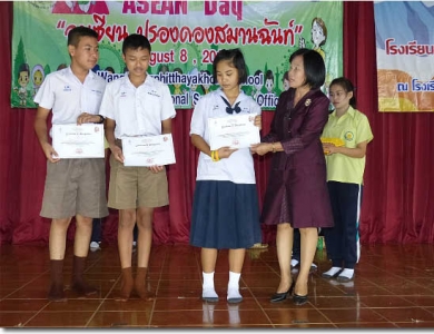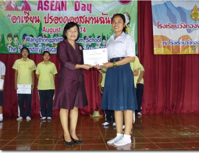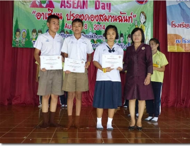 หัวข้อข่าว : มอบเกียรติบัตรนักเรียนเข้าร่วมโครงการประชาคมอาเซียน
