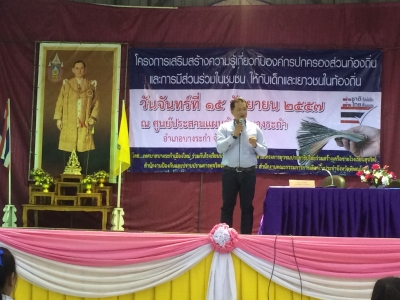 หัวข้อข่าว : การอบรมโครงการเสริมสร้างความรู้เกี่ยวกับการปกครองส่วนท้องถิ่นและการมีส่วนร่วมในชุมชนให้กับเด็กและเยาวชนในท้องถิ่น