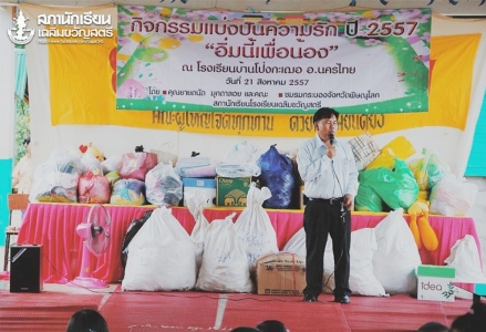 วันที่่ 21 สิงหาคม 2557 กลุ่มงานกิจกรรมนักเรียนและชุมชน,คณะครู บุคลากร นักเรียน,คณะกรรมการสภานักเรียนโรงเรียนเฉลิมขวัญสตรี ร่วมกับคุณยายถนัด มุกดาลอย (อดีตผู้อำนวยการโรงเรียนเฉลิมขวัญสตรี),ชมรมกระบองจังหวัดพิษณุโลกและผู้มีจิตศรัทธา จัดกิจกรรมแบ่งปันความรักปี 2557 โดยนำสิ่งของเครื่องใช้ อาหาร ครื่องดื่ม ไปมอบให้แก่นักเรียนโรงเรียนบ้านโป่งกะเฉอ อำเภอนครไทย จัหวัดพิษณุโลก ขอร่วมอนุโมทนาบุญมา ณ โอกาสนี้(ภาพ:สภานักเรียน/ข่าว:ประชาสัมพันธ์)