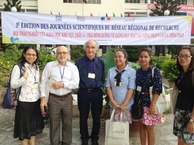 วันที่่ 24-26 กันยายน 2557 ครูรัตนา สุขาวห และครูภาณุพงศ์ ศรีสมบัติ ครูกลุ่มสาระการเรียนรู้ภาษาต่างประเทศ (โครงการพัฒนาภาษาฝรั่งเศส) โรงเรียนเฉลิมขวัญสตรี เข้าร่วมการสัมมนา ประชุม และนำเสนองานวิจัยระดับภูมิภาค คณะนักวิจัยจากประเทศเวียดนาม ไทย ลาว กัมพูชา และวิทยากรจากประเทศฝรั่งเศส จัดโดยศูนย์ภาษาฝรั่งเศสภูมิภาคเอเชียตะวันออกเฉียงใต้/องค์กรนานาชาติผู้ใช้ภาษาฝรั่งเศส ณ เมือง Nha Tranng ประเทศเวียดนาม (ภาพ:ภาณุพงศ์/ข่าว:ประชาสัมพันธ์)