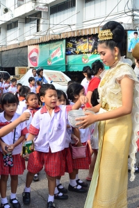 วันที่ 9 ตุลาคม 2557 นักเรียนโรงเรียนอุตรดิตถ์ดรุณี ร่วมเป็นนางฟ้าในริ้วขบวน และนางฟ้าถือขันรับบริจาคเงินทำบุญ ในพิธีทำบุญตักบาตรเทโวโรหณะ ที่วัดท่าถนน และวัดดอยท่าเสา เพื่อเป็นการส่งเสริมกิจกรรมพระพุทธศาสนา สืบสานประเพณีไทยให้อยู่คู่สังคมอย่างยั่งยืนและให้นักเรียนได้มีโอกาสได้แสดงตนเป็นพุทธศาสนิกชนที่ดี //เครือข่ายประชาสัมพันธ์โรงเรียนอุตรดิตถ์ดรุณี ภาพ:ข่าว