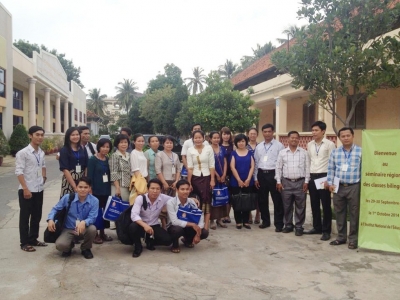 ครูสายชล วนาธรัตน์ ครูชำนาญการพิเศษกลุ่มสาระการเรียนรู้คณิตศาสตร์และครูสุภาวดี สุขกมลธรรม ครูกลุ่มสาระการเรียนรู้ภาษาต่างประเทศ(โครงการพัฒนาทักษะภาษาฝรั่งเศส) โรงเรียนเฉลิมขวัญสตรี เข้ารับการอบรมสัมมนาครูผู้สอนภาษาฝรั่งเศส คณิตศาสตร์ ฟิสิกส์ ในโครงการห้องเรียนสองภาษา จากประเทศกัมพูชา เวียดนาม ลาว และไทย ระหว่างวันที่ 29 กันยายน - 2 ตุลาคม 2557 ณ สถาบันการศึกษาแห่งชาติ กรุงพนมเปญ ประเทศกัมพูชา (ภาพ:สุภาวดี/ข่าว:ประชาสัมพันธ์)