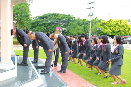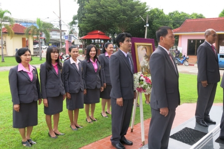 ผู้อำนวยการวิโรจน์ รอดสงฆ์ และคณะครูโรงเรียนเตรียมอุดมศึกษา ภาคเหนือ วางพวงมาลาเพื่อน้อมรำลึกถึงพระกรุณาธิคุณ พระบาทสมเด็จพระจุลจอมเกล้าเจ้าอยู่หัว เนื่องในวันปิยมหาราช ณ พลับพลาแปดเหลี่ยมโรงเรียนเตรียมอุดมศึกษา ภาคเหนือ เมื่อวันที่ ๒๓ ตุลาคม ๒๕๕๗//ผู้ส่งข่าว:อ้อยทิพย์ ฉิมบ้านไร่