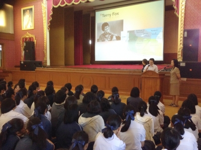 วันที่่ 24 พฤศจิกายน 2557 Miss Carlie Michelle Voigt "น้องแก้วตา" นักเรียนแลกเปลี่ยนชาวแคนาดา ศึกษาแลกเปลี่ยนวัฒนธรรม ณ โรงเรียนเฉลิมขวัญสตรี ได้ประชาสัมพันธ์กิจกรรมเดินวิ่งการกุศล Therrys Marathon of Hope ให้กับนักเรียนระดับชั้นมัธยมศึกษาปีที่่ 2 คาบปกครอง โดยกิจกรรมครั้งนี้กลุ่มงานกิจกรรมนักเรียน สภานักเรียนและนักเรียนแลกเปลี่ยน ร่วมกันจัดขึ้นในวันที่่ 12 พฤศจิกายน 2557 เวลา 08.00-09.00 น. เพื่อรับบริจาคเงินสนับสนุนการวิจัยโรคมะเร็งมูลนิธิเทอร์รี่ ฟ็อกซ์ ประเทศแคนาดา และสถาบันมะเร็งแห่งชาติ ประวัติของเทอรี่ ฟอกซ์ เป็นเด็กนุ่มชาวแคนาดา ที่โชคร้ายเป็นโรคมะเร็ง ทำให้ต้องถูกตัดขาเหนือเข่าด้วยวัยเพียง 19 ปี (คศ.1977) ขณะนอนป่วยอยู่ในโรงพยาบาล เขาเกิดแรงบันดาลใจที่จะรณรงค์ให้คนทั้งโลกสนใจศึกษาหาวิธีการที่จะป้องกันมหันตภัยจากโรคมะเร็ง เขาเลือกรณรงค์ด้วยการวิ่งแทบจะไม่มีคนสนใจการกระทำของเขา เขาวิ่งไปอย่างช้า ๆ ล้มลุกคลุกคลานวันละหลายครั้ง วันแล้ววันเล่าของการวิ่งที่แสนทรมานผ่านไอแดดร้อน เส้นทางที่เป็นเนินสูงและความลาดชันในบางช่วงผู้คนเริ่มให้ความสนใจกับความมุ่งมั่นและปณิธานอันกล้าแกร่งของเด็กหนุ่ม สื่อมวลชนเริ่มเกาะติดเหตุการณ์และเผยแพร่ข่าวสารของเทอรี่ทุกระยะไปทั่วแคนาดาและทั่วโลก เขายังคงวิ่งต่อไปด้วยหัวใจที่ทรหดจนถึงวันที่ 143 ด้วยระยะทางมากกว่า 3,000 ไมล์เขายังไปไม่ถึงจุดหมายที่ตั้งไว้ แต่มะเร็งร้ายในตัวเขากำเริบ ไปต่อไม่ไหว เขาถูกนำส่งโรงพยาบาล และเสียชีวิตในเดือนมิถุนายน คศ.1981 ก่อนครบรอบวันเกิดอายุ 23 ปีพื่อสดุดีวีรกรรมอันกล้าหาญและคุณค่าของมรดกทางความคิดของเทอรี่ ที่มีต่อปัญหาโรคมะเร็ง จึงมีการจัดวิ่งTherrys Marathon of Hope ขึ้นทั่วโลกเพื่อรำลึกถึงคุณงามความดีของ Therry Foxe และเพื่อนำเงินรายได้สมทบทุนให้กับการศึกษาวิจัยเพื่อป้องกันโรคมะเร็งในแต่ละประเทศ (ภาพ:ข่าว/ประชาสัมพันธ์:ขอบคุณข้อมูลจากhttp://www.thairunning.com/terry_fox_marathon_of_hope.htm)