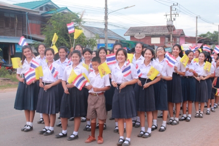 นายสุพจน์ ต่อสุวรรณ รองผู้อำนวยการโรงเรียนเนินมะปรางศึกษาวิทยา นำคณะครู และนักเรียนร่วมพิธีจุดเทียนชัยถวายพระพร เนื่องในวโรกาสมหามงคลเฉลิมพระชนมพรรษาพระบาทสมเด็จพระเจ้าอยู่หัว 5 ธันวามหาราช ณ สนามหน้าที่ว่าการอำเภอเนินมะปราง เมื่อวันที่ 5 ธันวาคม 2557