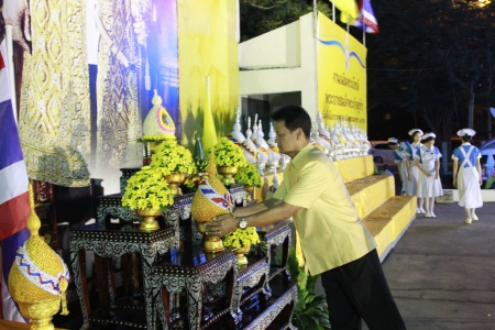 นายธวัช บุญประสพ รองผู้อำนวยการฝ่ายบริหารวิชาการ นำคณะครูโรงเรียนเตรียมอุดมศึกษา ภาคเหนือ เข้าร่วมพิธีการภาคค่ำ พิธีถวายเครื่องราชสักการะ และพิธีจุดเทียนถวายพระพรชัยมงคล และถวายราชสดุดีเฉลิมพระเกียรติ "งานเฉลิมพระเกียรติพระบาทสมเด็จพระเจ้าอยู่หัว เนื่องในโอกาสมหามงคลเฉลิมพระชนมพรรษา ๘๗ พรรษา ๕ ธันวาคม ๒๕๕๗ จังหวัดพิษณุโลก" ณ เวทีกลาง หน้าศาลากลางจังหวัดพิฺษณุโลก เมื่อวันที่ ๕ ธันวาคม ๒๕๕๗//ผู้ส่งข่าว:อ้อยทิพย์ ฉิมบ้านไร่