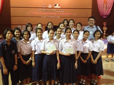 วันที่่ 30 พฤศจิกายน 2557 นางสาวนภัสสร บงสูงเนิน นักเรียนชั้นมัธยมศึกษาปีที่่ 5.9 โรงเรียนเฉลิมขวัญสตรี รับพระราชทานเกียรติบัตรรางวัลชมเชยจากสมเด็จพระเทพรัตนราชสุดาฯ สยามบรมราชกุมารี จากการแข่งขันการเขียนบรรยายภาพเป็นภาษาฝรั่งเศส จัดขึ้นโดยสมาคมครูภาษาฝรั่งเศสแห่งประเทศไทย ในพระราชูปถัมภ์สมเด็จพระเทพรัตนราชสุดาฯ สยามบรมราชกุมารี ณ โรงเรียนอัสสัมชัญ เขตบางรัก กรุงเทพฯ ในนามของคณะครู บุคลากรและนักเรียนโรงเรียนเฉลิมขวัญสตรี ขอแสดงความชื่นชมยินดีมา ณ โอกาสนี้ ขอขอบคุณคณะครูโครงการพัฒนาทักษะภาษาฝรั่งเศสทุกท่าน และผู้ปกครองที่ส่งเสริมเป็นกำลังใจให้นักเรียนมาโดยตลอด (ภาพ:ภาณุพงศ์/ข่าว:ประชาสัมพันธ์)