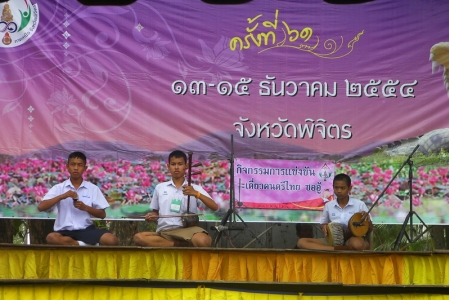 วันพฤหัสบดีที่ 15 ธันวาคม 2554 กลุ่มสาระการเรียนรู้ศิลปะโรงเรียนอุตรดิตถ์ เป็นตัวแทน สพม. เขต 39 เข้าแข่งขันเดี่ยวเครื่องดนตรีไทย งานศิลปหัตถกรรมภาคเหนือ ณ จังหวัดพิจิตร เมื่อวันที่ 13-15 ธันวาคม 2554 ที่ผ่านมา ปรากฏผลการแข่งขันดังนี้ 1.เดี่ยวซอด้วง ม.ต้น ชนะเลิศ ที่ 1 เหรียญทอง 2.เดี่ยวซออู้ ม.ต้น ชนะเลิศที่ 1 เหรียญทอง 3.เดี่ยวระนาดเอก ม.ต้น ได้ที่ 2 เหรียญทอง 4.เดี่ยวจะเข้ ม.ต้น ได้ที่ 4 เหรียญทอง 5.เดี่ยวขลุ่ยเพียงออ ม.ต้น ได้ที่ 6 เหรียญทอง 6.เดี่ยวฆ้องวงเล็ก ม.ปลาย ได้ที่ 4 เหรียญทอง 7.เดี่ยวระนาดทุ้ม ม.ปลาย ได้ที่ 6 เหรียญทอง 8.เดี่ยวฆ้องวงใหญ่ ม.ปลาย ได้ที 6 เหรียญเงิน 9. ขับร้องเพลงไทยลูกทุ่ง ชาย ม.ปลาย ได้ที่ 5 เหรียญทอง (งานประชาสัมพันธ์โรงเรียนอุตรดิตถ์ ภาพ/ข่าว)