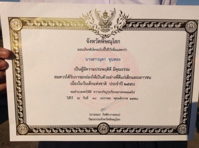 หัวข้อข่าว : มอบเกียรติบัตรให้กับนักเรียนที่มีความประพฤติดี เนื่องในวันเด็กแห่งชาติ
