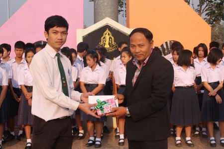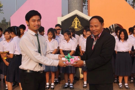 หัวข้อข่าว : นักศึกษาฝึกประสบการณ์กล่าวขอบคุณและอำลานักเรียนหน้าเสาธง