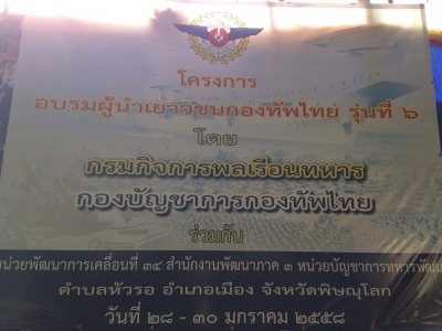 หัวข้อข่าว : โครงการฝึกอบรมผู้นำเยาวชนเพื่อสันติภาพ กองบัญชาการกองทัพไทย