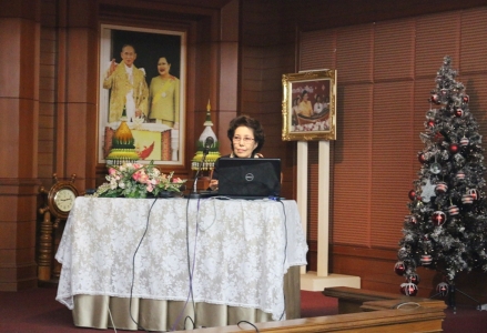วันที่่ 2 กุมภาพันธ์ 2558 ดร.จิตราภรณ์ ใยศิลป์ ผู้อำนวยการโรงเรียนเฉลิมขวัญสตรี กล่าวต้อนรับคณะผู้ประสานงาน วิทยากรโครงการอนุรักษ์พันธุกรรมพืชอันเนื่องมาจากพระราชดำริสมเด็จพระเทพรัตนราชสุดาฯ สยามบรมราชกุมารี (อพ.สธ) คณะผู้บริหารและคณะครูที่เข้ารับการอบรมปฏิบัติการงานสวนพฤกษศาสตร์โรงเรียนกิจกรรมสร้างจิตสำนึกในการอนุรักษ์พันธุกรรมพืช เรื่อง" 5 องค์ประกอบ" ณ ห้องประชุมอาคารเฉลิมพระเกียรติ 50 พรรษา โรงเรียนเฉลิมขวัญสตรี ระหว่างวันที่่ 2-6 กุมภาพันธ์ 2558 (ภาพ:อดิเรก/ข่าว:ประชาสัมพันธ์)