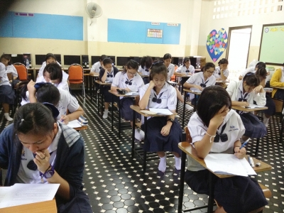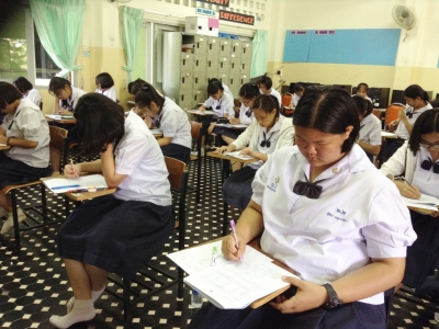 วันที่ 23 กุมภาพันธ์ 2558 ฝ่ายบริหารงานวิชาการโรงเรียนเฉลิมขวัญสตรี ดำเนินการทดสอบวัดผลปลายภาคเรียนที่ 2 ปีการศึกษา 2558 สำหรับนักเรียนชั้นมัธยมศึกษาปีที่ 1 และชั้นมัธยมศึกษาปีที่่ 2 โดยใช้แบบทดสอบกลางจากสำนักงานคณะกรรมการการศึกษาขั้นพื้นฐานใน 5 รายวิชาหลักได้แก่ คณิตศาสตร์ ภาษาไทย สังคมศึกษา วิทยาศาสตร์และภาษาอังกฤษ ได้รับความร่วมมือจากคณะครูที่เกี่ยวข้องและนักเรียน ที่ทำให้การทดสอบดำเนินไปด้วยความเรียบร้อย (ภาพ:ข่าว/ประชาสัมพันธ์)