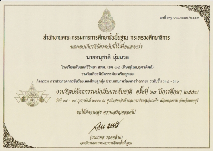 หัวข้อข่าว : นักเรียนโรงเรียนลับแลศรีวิทยา ตัวแทน สพม. เขต 39 (พิษณุโลก,อุตรดิตถ์) ที่ได้รับรางวัลเกียรติบัตรระดับเหรียญทอง กิจกรรม การประกวดการขับร้องเพลงไทยลูกทุ่ง ประเภทบกพร่องทางร่างกายฯ ระดับชั้น ม.4- ม.6