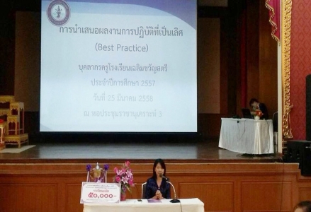 วันที่่ 25 มีนาคม 2558 ฝ่ายบริหารงานวิชาการโรงเรียนเฉลิมขวัญสตรี จัดกิจกรรมนำเสนอผลงานการปฏิบัติที่เป็นเลิศ(Best Practice) สำหรับคณะครูและบุคลากร ประจำปีการศึกษา 2557 ณ หอประชุมราชานุเคราะห์ 3 กิจกรรมในวันนี้สำเร็จลงด้วยความร่วมมือจากคณะครูและบุคลากรทุกท่านเป็นอย่างดียิ่ง ขอแสดงความยินดีกับครูที่ได้รับเกียรติบัตร ขอบคุณคณะกรรมการบริหารโรงเรียนที่ให้การสนับสนุนมาโดยตลอด (ภาพ:ข่าว/ประชาสัมพันธ์)