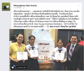 หัวข้อข่าว : ผลงานสิ่งประดิษฐ์ทางวิทยาศาสตร์ โรงเรียนนครไทย ได้รับการคิดเลือกแข่งขันในเวทีนานาชาติ ประเทศมาเลเซีย