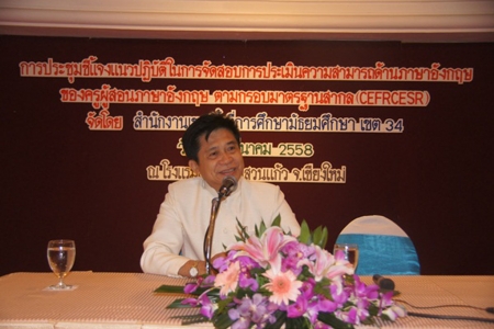 คุณครูนฤมล แก้วแกมแข และคุณครูวีระชัย จันทะเสน โรงเรียนเตรียมอุดมศึกษา ภาคเหนือ เข้าร่วมประชุมฟังคำชี้แจงการเตรียมความพร้อมการสอบประเมินความสามารถด้านภาษาอังกฤษของครูผู้สอนวิชาภาษาอังกฤษ ตามกรอบมาตรฐานสากล The Common European Framework of Reference for Languages (CEFR) จัดโดย สำนักงานคณะกรรมการการศึกษาขั้นพื้นฐาน ร่วมกับสำนักงานเขตพื้นที่การศึกษามัธยมศึกษา เขต ๓๔ โดยมีข้าราชการครูและบุคลากรทางการศึกษา สังกัด สำนักงานเขตพื้นที่การศึกษาประถมศึกษาและสำนักงานเขตพื้นที่การศึกษามัธยมศึกษา ภาคเหนือ จำนวน ๑๒๔ คน เข้าร่วมประชุม ณ ห้องพันตน โรงแรมโลตัสปางสวนแก้ว อำเภอเมือง จังหวัดเชียงใหม่ เมื่อวันที่ ๒๐ มีนาคม ๒๕๕๘//ผู้ส่งข่าว:อ้อยทิพย์ ฉิมบ้านไร่