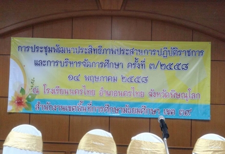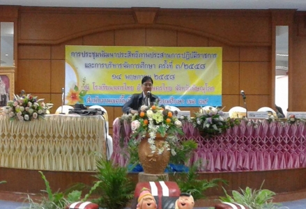 วันที่่ 14 พฤษภาคม 2558 นายศาศวัต ประทุมรัตน์ รองผู้อำนวยการโรงเรียนเฉลิมขวัญสตรี เข้าร่วมการประชุมพัฒนาประสิทธิภาพประสานการปฏิบัติราชการและการบริหารจัดการศุึกษา ครั้งที่่ 3/2558 และร่วมพิธีลงนามบันทึกข้อตกลงความร่วมมือ(MOU) ในการพัฒนาสำนักงานเขตพื้นที่การศึกษา โดยการป้องกันและปราบปรามการทุจริต โครงการ สพฐ.ใสสะอาดปราศจากคอรัปชั่น ณ โรงเรียนนครไทย อำเภอนครไทย จังหวัดพิษณุโลก (ภาพ:ข่าว/ประชาสัมพันธ์)