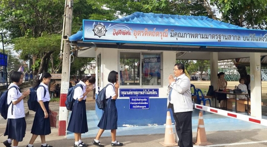 หัวข้อข่าว : ผู้อำนวยการโรงเรียนอุตรดิตถ์ดรุณี รับนักเรียนที่หน้าโรงเรียน วันแรกของปีการศึกษา 2558