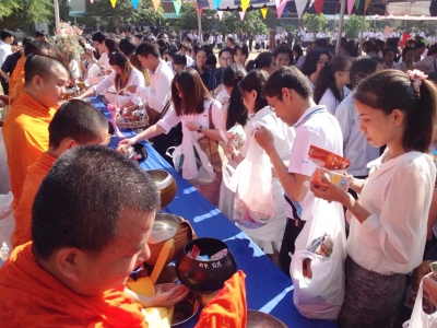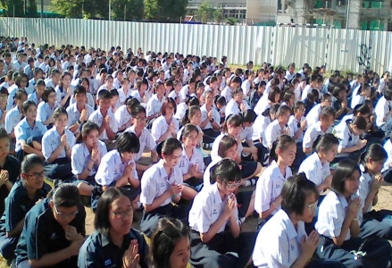 วัวันที่่ 29 พฤษภาคม 2558 โรงเรียนเฉลิมขวัญสตรี จัดพิธีตักบาตรข้าวสารอาหารแห้งเนื่องในวันวิสาขบูชา เนื่องในเทศกาลวันวิสาขบูชาและวันอัฏฐมีบูชา ระหว่างวันที่ 29 พฤษภาคม-9 มิถุนายน 2558 โดยนิมนต์พระจากวัดราชบูรณะจำนวน 9 รูปมารับบิณฑบาตจากคณะครู บุคลากรและนักเรียน ณ บริเวณสนามหน้าเสาธงโรงเรียนเฉลิมขวัญสตรี (ภาพ:ศิริรัตน์/ข่าว:ประชาสัมพันธ์)