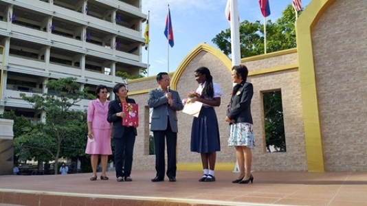 เมื่อวันที่ 2 มิถุนายน 2558 ดร.ช่วยชาติ ตันตระกูล ผู้อำนวยการโรงเรียนจ่านกร้อง มอบเกียรติบัตรและของที่ระลึกให้กับ Miss Fredrica Florine GEORGE และกล่าวอำลาคุณครูและเพื่อนๆ ชาวจ่านกร้อง ด้วยความประทับใจโดยพูดภาษาไทย ก่อนที่จะบินกลับประเทศอเมริกา ภาพ/ข่าว : พรทิพย์ แสงแก้ว