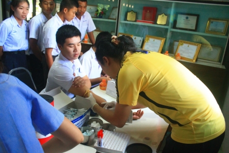 วันพฤหัสบดีที่ 3 มิถุนายน 2558 โรงพยาบาลสมเด็จพระยุพราช อ.นครไทย ร่วมกับอาสาสมัครโรงพยาบาลส่งเสริมสุขภาพบ้านบุ่งตารอด องค์การบริหารส่วนตำบลยางโกลน จัดเวทีรณรงค์สร้างความรู้ความเข้าใจ โครงการการเข้าถึงการให้บริการรักษาตรวจเลือด VGT แบบสมัครใจ โดยมีทีมแพทย์และพยาบาล อสม.มาให้ความรู้กับนักเรียนชั้นมัธยมศึกษาตอนปลายโรงเรียนยางโกลนวิทยา จำนวน 108 คน ซึ่งได้รับเกียรติจาก นายพาสิทธิ์ หิมโสภา นายกองค์การบริหารส่วนตำบลยางโกลน เป็นประธานในพิธีเปิดกิจกรรมดังกล่าว (ภาพ : ข่าว งานประชาสัมพันธ์โรงเรียน)