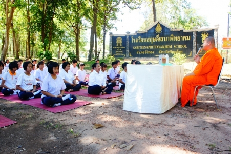 วันที่ ๑๐ มิถุนายน ๒๕๕๘ นางเรณู บุญเสรฐ ผู้อำนวยการโรงเรียนสฤษดิ์เสนาพิทยาคม คณะครู นักเรียน และบุคลาการ ดำเนินโครงการโรงเรียนวิถีพุทธตามนโยบายของกระทรวงศึกษาธิการ โดยมีกิจกรรมการสวดมนต์เจริญภาวนา ฝึกสมาธิ และฟังธรรมเทศนา นอกจากนี้ในแต่ละวันหลังกิจกรรมหน้าเสาธง ครูและนักเรียนร่วมกันปฏิบัติกิจกรรม สวดมนต์ แผ่เมตตา นั่งสมาธิ เล่านิทานคุณธรรม เพื่อสร้างเสริมคุณธรรมในสถานศึกษา และเพื่อสนับสนุนให้ผู้เรียนพัฒนาตามหลักพุทธธรรมอย่างบูรณาการ โดยส่งเสริมให้เกิดความเจริญงอกงามตามลักษณะแห่งปัญญาวุฒิธรรม ๔ ประการ ณ โรงเรียนสฤษดิ์เสนาพิทยาคม อำเภอวังทอง จังหวัดพิษณุโลก (ภาพ/ข่าว : นางปฐมาพร แสงอาทิตย์ ประชาสัมพันธ์โรงเรียนสฤษดิ์เสนาพิทยาคม)