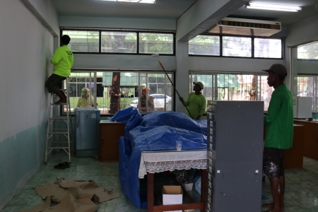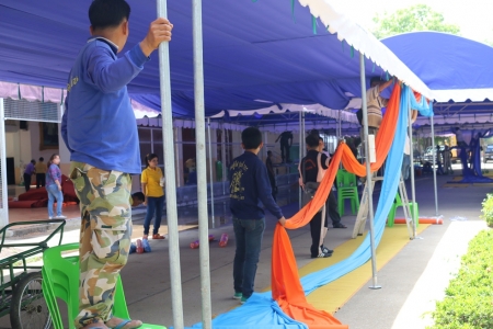 การเตรียมต้อนรับเสด็จฯ วันที่ 15 มิถุนายน 2558 ณ โรงเรียนประชาสงเคราะห์วิทยา ในวันนี้มีหน่วยงานต่างๆ เข้ามาทำหน้าที่ เป็นจำนวนมาก ทั้งปลัดอาวุโสอำเภอบางระกำ มาให้คำชี้แนะ กำนันผู้ใหญ่บ้าน ทางอบต. หนองกุลาดูแลเรื่องการจับผ้าของส่วนห้องประทับหนึ่ง/ประทับสอง อบต.บึงระมาน ฝ้าผ้าบริเวณเต้นท์ทางเดิน ทางโรงเรียนประชาสงเคราะห์วิทยา ฝ่ายสถานที่จัดเตรียมน้ำดื่ม จัดเตรียมทาสีห้องทรงงาน กองพันสบร23 บชร3 ช่วยยกอุปกรณ์ต่างๆ การไฟฟ้ามาตรวจเช็คความเรียบร้อยของหม้อแปลงไฟฟ้า (ภาพ:ข่าว- ประชาสัมพันธ์โรงเรียนประชาสงเคราะห์วิทยา- https://www.facebook.com/prachasongkrowittaya)