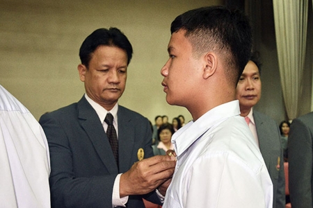หัวข้อข่าว : ผู้อำนวยการวิโรจน์ รอดสงฆ์ และนายธวัช บุญประสพ รองผู้อำนวยการฝ่ายบริหารวิชาการโรงเรียนเตรียมอุดมศึกษา ภาคเหนือ เข้าร่วมพิธีประดับพระเกี้ยวนักเรียน โรงเรียนเตรียมอุดมศึกษา