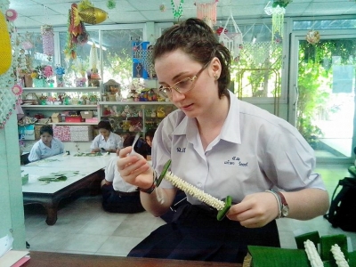 Miss Carlie Michelle Voigt (แก้วตา) นักเรียนศึกษาแลกเปลี่ยนวัฒนธรรมจากประเทศแคนาดา จากสโมสรโรตารีนเรศวร ภาค 3360 โรตารีสากลและสโมสรโรตารีพิษณุโลก ภาค 3360 โรตารีสากลจังหวัดพิษณุโลก ศึกษาแลกเปลี่ยนวัฒนธรรม ณ โรงเรียนเฉลิมขวัญสตรี แก้วตาเรียนรู้วัฒนธรรมไทยกับครูอัจฉรา นาคเมธี ครูประจำวิชาร้อยมาลัยกับเพื่อนนักเรียนไทยอย่างมีความสุขร้อยมาลัยด้วยความตั้งใจมีผลงานออกมาสวยงาม(ภาพ:อัจฉรา/ข่าว:ประชาสัมพันธ์)