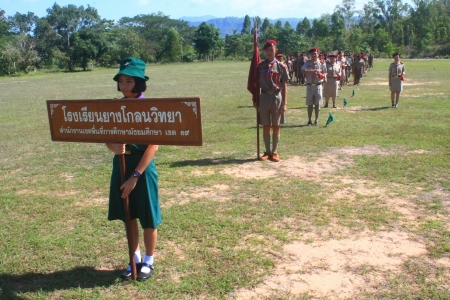 วันที่ 1 กรกฎาคม 2558 นำโดย นางภคพร สีกา ผู้อำนวยการโรงเรียนยางโกลนวิทยา งานลูกเสือ-เนตรนารีได้จัดพิธีทบทวนคำปฏิญาณและสวนสนามของคณะลูกเสือ เนตรนารี เนื่องในวันคล้ายวันสถาปนาคณะลูกเสือแห่งชาติ เพื่อน้อมรำลึกถึงพระมหากรุณาธิคุณและเทิดพระเกียรติแด่พระบาทสมเด็จพระปรเมนทรมหาวชิราวุธพระมงกุฎเกล้าเจ้าอยู่หัวผู้ทรงให้กำเนิดลูกเสือไทย และส่งเสริมคุณธรรม จริยธรรมและค่านิยมอันพึงประสงค์ให้แก่เยาวชนได้ยึดมั่นในคำปฏิญาณและกฎของลูกเสือให้มั่นคงไว้ (ภาพ : ข่าว งานประชาสัมพันธ์โรงเรียน)