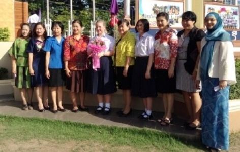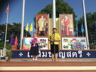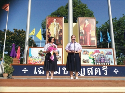 ดร.จิตราภรณ์ ใยศิลป์ ผู้อำนวยการโรงเรียนเฉลิมขวัญสตรี เป็นตัวแทนคณะครู บุคลากรและนักเรียนกล่าวต้อนรับ Miss Franke "Lea" ชื่อไทย "ลีอา" นักเรียนศึกษาแลกเปลี่ยนวัฒนธรรมจากโครงการ YFU ประเทศเยอรมนี มาศึกษาแลกเปลี่ยนวัฒนธรรม ณ โรงเรียนเฉลิมขวัญสตรี เป็นเวลา 1 ปี โดยมีครอบครัวอุปถัมภ์ได้แก่ คุณนิตรพิบูล ปลั่งศรีรัตน์,คุณอุไรริษา ปลั่งศรีรัตน์ "ร้านฮะเช่งหลี" ซึ่งเป็นผู้ปกครองของเด็กหญิงนภสร แสงสุข นักเรียนชั้นมัธยมศึกษาปีที่่ 3.11 ในโอกาสนี้พวกเราชาวเฉลิมขวัญสตรี ยินดีต้อนรับ"ลีอา"เป็นสมาชิกใหม่ของครอบครัวของเรา (ภาพ:ข่าว/ประชาสัมพันธ์)