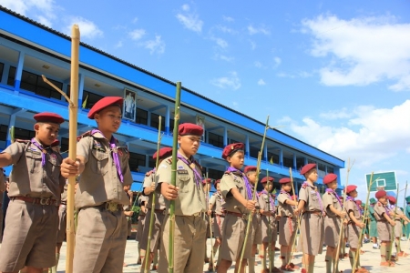 วันพุธที่ 1 กรกฎาคม 2558 โรงเรียนนาบัววิทยาดกิจกรรม ทบทวนคำปฏิญาณและสวนสนามในวันคล้ายวันสถาปนาคณะลูกเสือแห่งชาติ โดยมีจ่าสิบเอกประมวล วันมี ผู้อำนวยการโรงเรียน เป็นระธานในพิธี เพื่อน้อมรำลึกถึงพระมหากรุณาธิคุณของพระบาทสมเด็จพระมงกุฎเกล้าเจ้าอยู่หัว ที่ทรงให้ กำเนิดกิจการลูกเสือไทย (ภาพ:ข่าว/เจษฎากร มากรื่น)