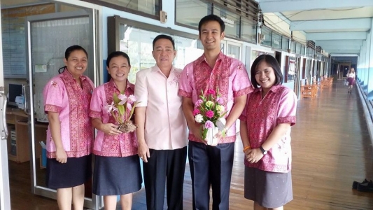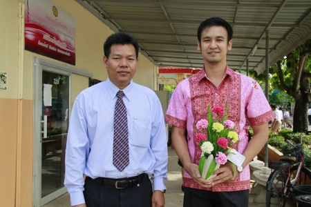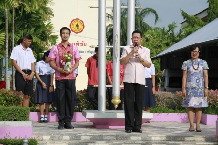 วันอังคารที่ 7 กรกฎาคม 2558 นายธารา น่วมศิริ ผู้อำนวยการโรงเรียนพิชัย มอบช่อดอกไม้และแสดงความยินดีกับคุณครูจตุรงค์ บุญเสือ ที่สำเร็จการศึกษาระดับปริญญาโท สาขาบริหารการศึกษา จากมหาวิทยาลัยกรุงเทพธนบุรี ณ บริเวณหน้าเสาธง โรงเรียนพิชัย