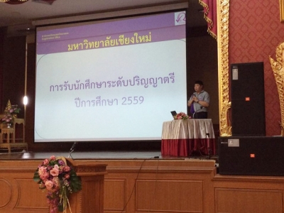 วันที่ 14 กรกฎาคม 2558 มหาวิทยาลัยเชียงใหม่ ได้จัดประชุมรองผู้อำนวยการฝ่ายวิชาการและครูที่รับผิดชอบงานแนะแนว สำหรับโรงเรียนในเขตภาคเหนือตอนล่างเพื่อชี้แจงนโยบายการับนักศึกษาระดับปริญญาตรี ประจำปีการศึกษา 2559 ณ หอประชุมราชานุเคราะห์ 3 โรงเรียนเฉลิมขวัญสตรี (ภาพ:ข่าว/ประชาสัมพันธ์)
