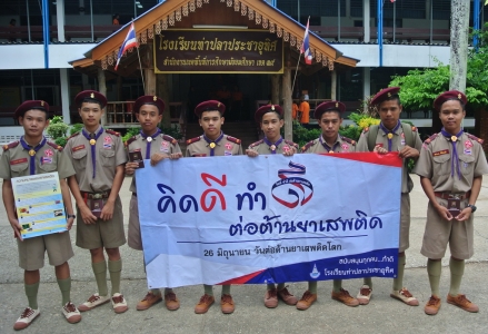 วันที่ ๑๕ กรกฎาคม ๒๕๕๘ นายจลัญ อินตายวง ผู้อำนวยการโรงเรียนท่าปลาประชาอุทิศ มอบนโยบายและแนวทางขับเคลื่อนลูกเสือต้านยาเสพติด ประจำปี ๒๕๕๘ ให้แก่คณะลูกเสือ ณ ห้องประชุมเฉลิมพระเกียรติ อาคาร ๔ โรงเรียนท่าปลาประชาอุทิศ