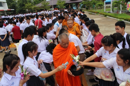 เมื่อวันที่ ๒๙ กรกฎาคม ๒๕๕๘ คณะครู นักเรียน นำโดยนายบรรเทิง คำทอง ผู้อำนวยการโรงเรียน ร่วมกันจัดกิจกรรมตักบาตรข้าวสารอาหารแห่งเนื่องในวันอาสาฬหบูชา ประจำปี ๒๕๕๘ (ฐาปกรณ์:ภาพ/ข่าว)