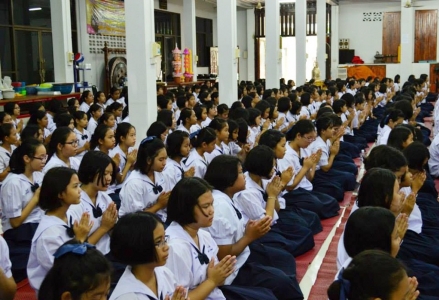 วันที่ 29 กรกฎาคม 2558 ดร.จิตราภรณ์ ใยศิลป์ ผู้อำนวยการโรงเรียนเฉลิมขวัญสตรีพร้อมด้วยคณะครู บุคลากรและนักเรียน ร่วมกันอนุโมทนาบุญเนื่องในวันอาสาฬหบูชาและวันเข้าพรรษา โดยนักเรียนชั้นมัธยมศึกษาปีที่่ 1 และคณะครูได้แห่เทียนและนำไปถวาย ณ วัดใหม่อภัยยาราม อำเภอเมือง จังหวัดพิษณุโลก (ภาพ:กีรติ/ข่าว:ประชาสัมพันธ์)
